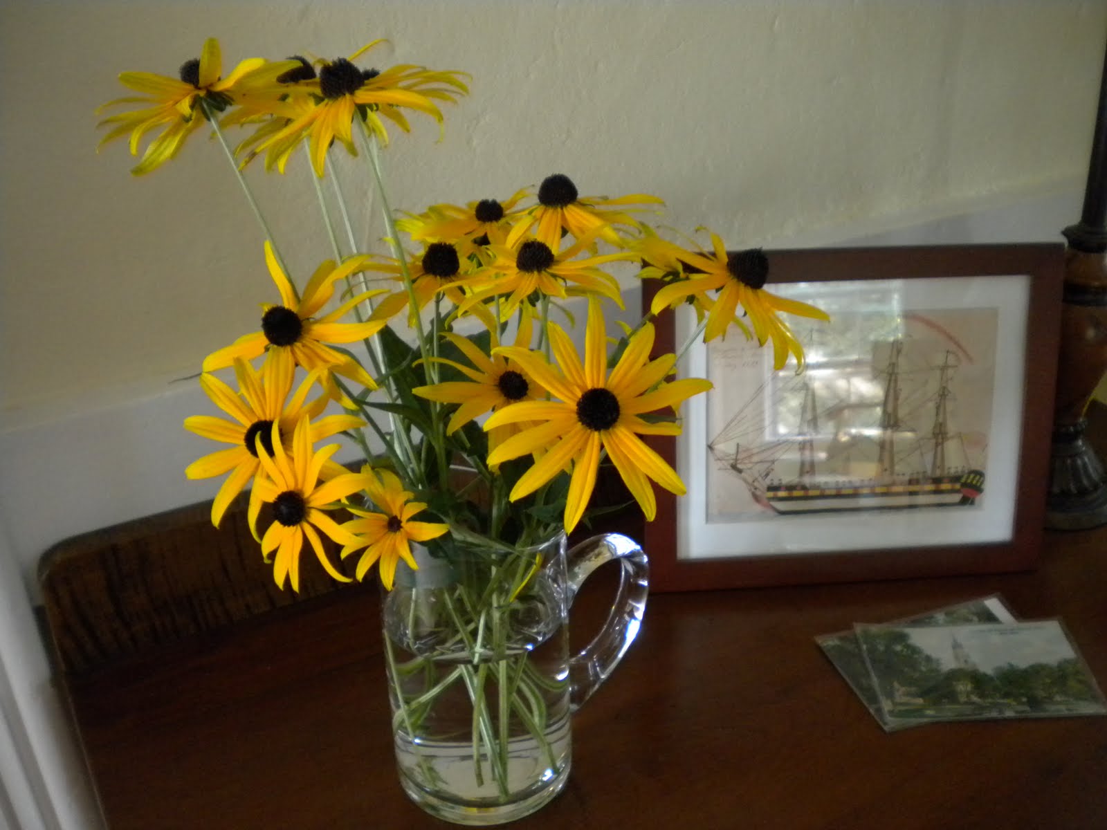It has been hot and dry in Maine but the Black Eyed Susans are taking over the garden and thriving despite the heat. Amy has them planted in all of her gardens and loves using them for cut flowers on the dining room tables, in the guests’ room bouquets and in vases in the common rooms. It is a fitting tribute to her grandmother, Nana, who, I am told, always had a bouquet of Black Eyed Susans on her kitchen table during the summer months.