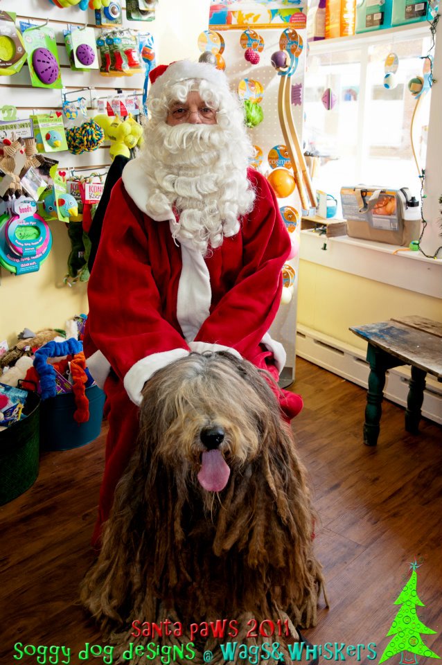 Today Santa made a special visit to our local pet supply store, Wags n Whiskers, to meet and greet the local canine population. (Yes, cats were welcome too but I really don’t like to give them attention.) I was one of the first through the door to have my picture taken with the big guy!